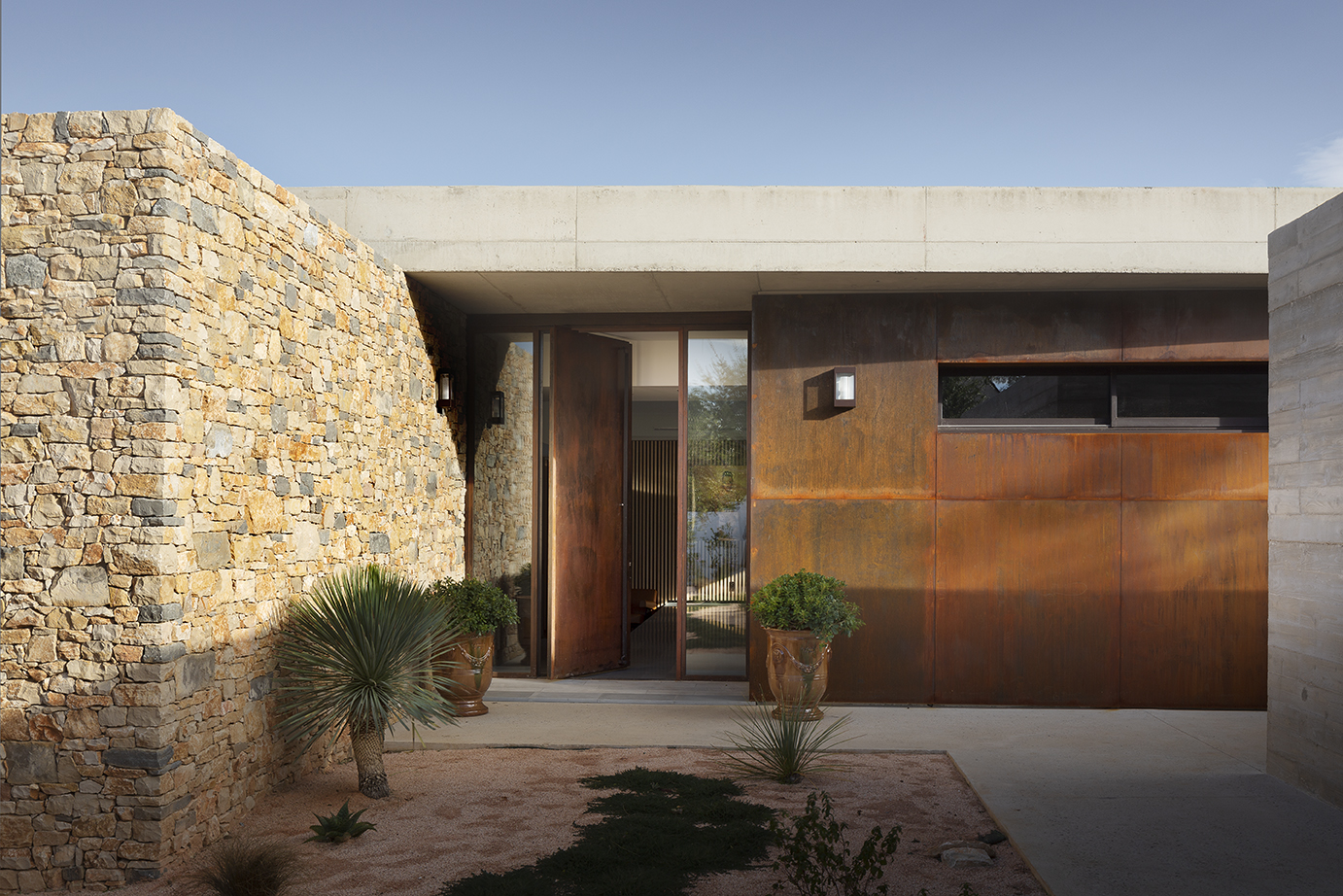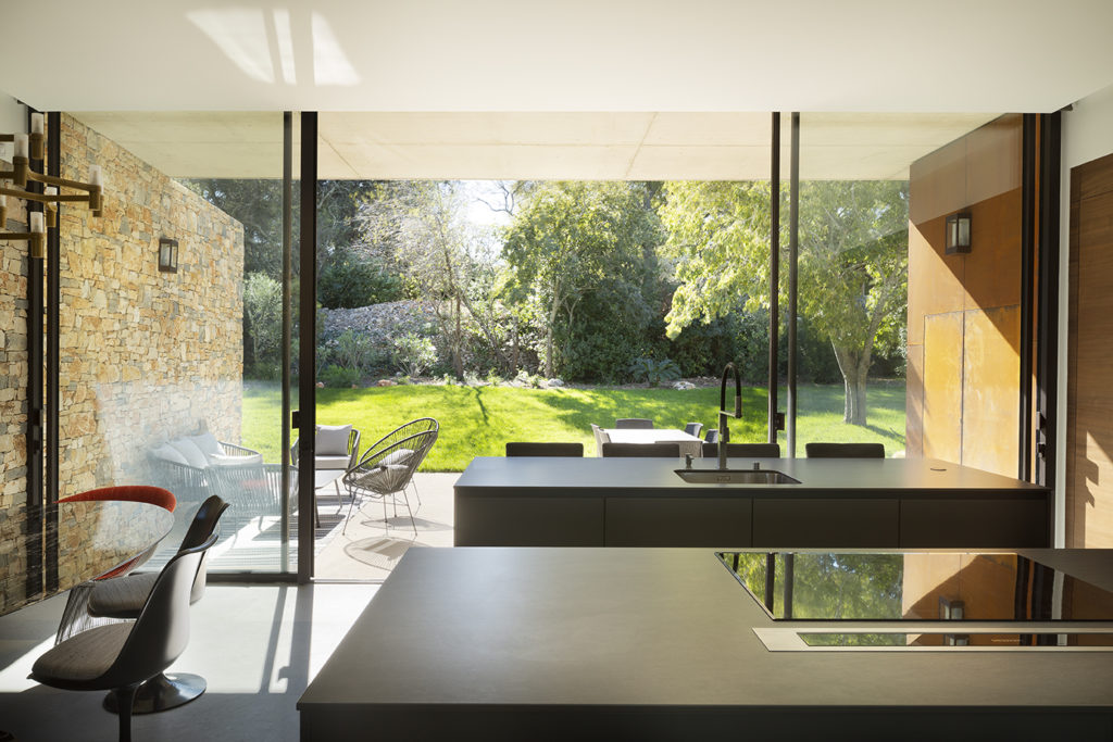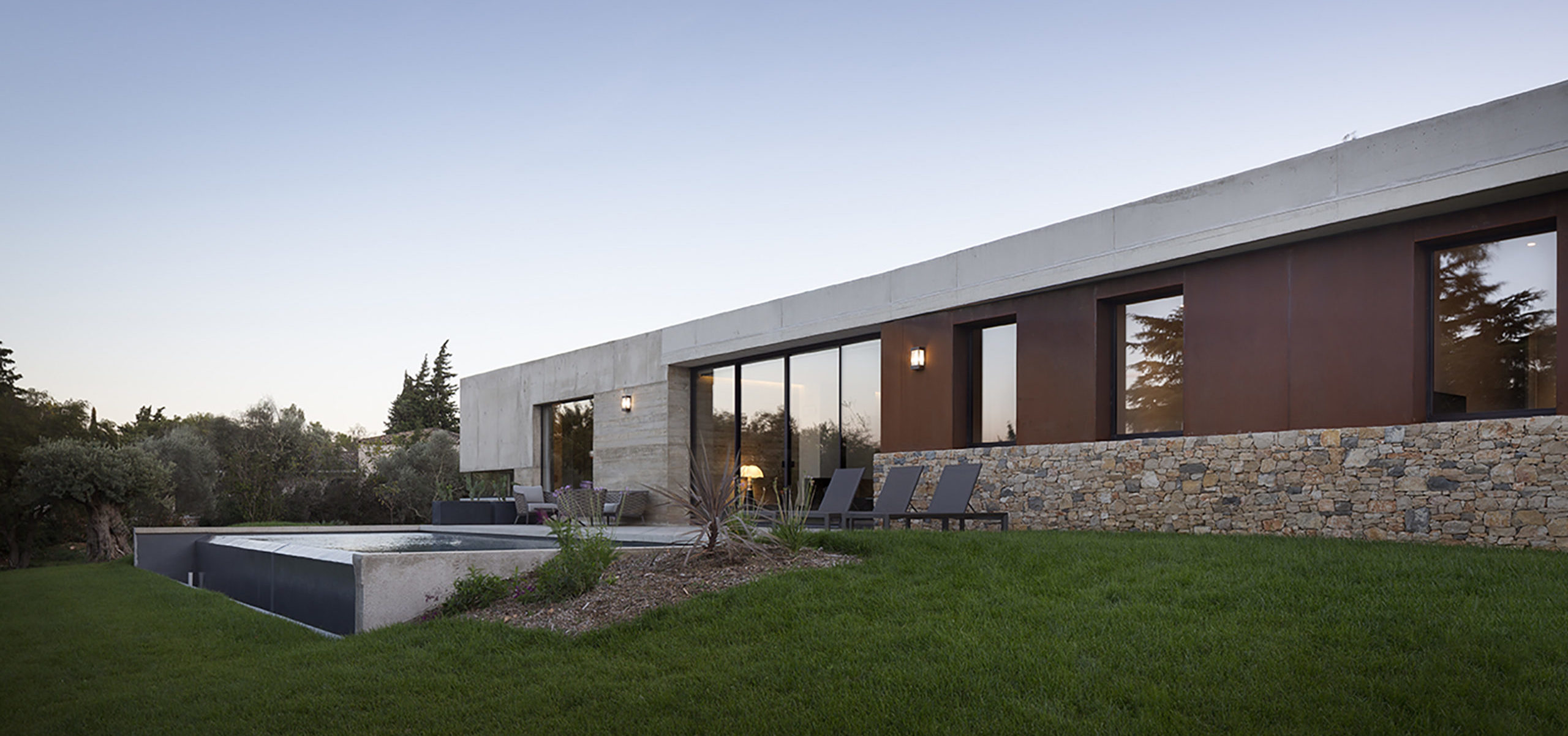 Cette maison individuelle de 250 m2 se situe sur la commune de Nîmes (Gard). Livrée en 2020, la maison est conçue sur la base de quatre volumes décalés les uns par rapport aux autres et implantée en longueur avec un jeu de paliers intérieurs pour respecter la configuration du terrain. Un mur de parement pierre se prolonge à l’intérieur du bâtiment et se mélange avec le béton brut et l’acier Corten.